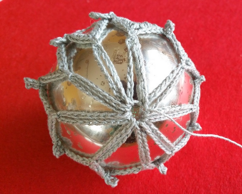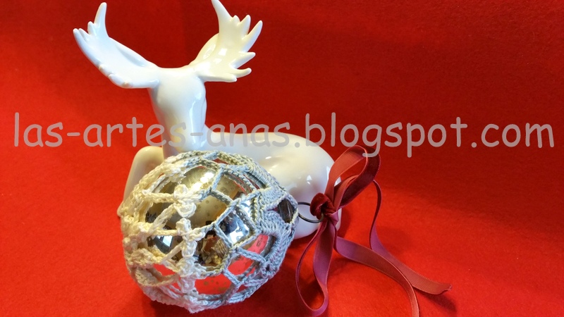 Os pongo dos ejemplos de como con un poco de ingenio, se puede vestir desde botellas hasta bolas , puedes elegir cualquier muestra que te guste y adaptarla a tu proyecto, por ejemplo este es el punto utilizado para la bola hecha de algodón gris, con aguja finita , haz la prueba , queda mejor trabajándola con aguja 1 nº MENOR de lo que corresponde al hilo, de esta manera obtendremos un punto prieto y contundente, que guarda perfectamente la forma
