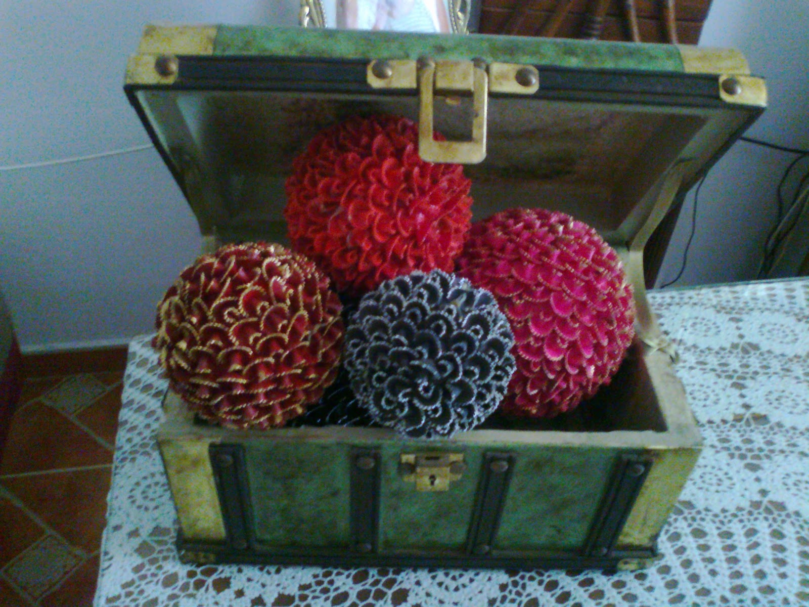 Tengo q agradecer a mi madre, q es la que me a prestado sus bolas y me apuesto en antecedente como realizarlas, además quiero hacer mención a las mujeres del taller de manualidades de la asociación germinar de Bobadilla Estación que ellas han sido la inventoras de todo esto.