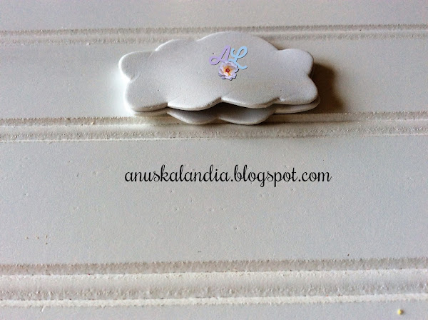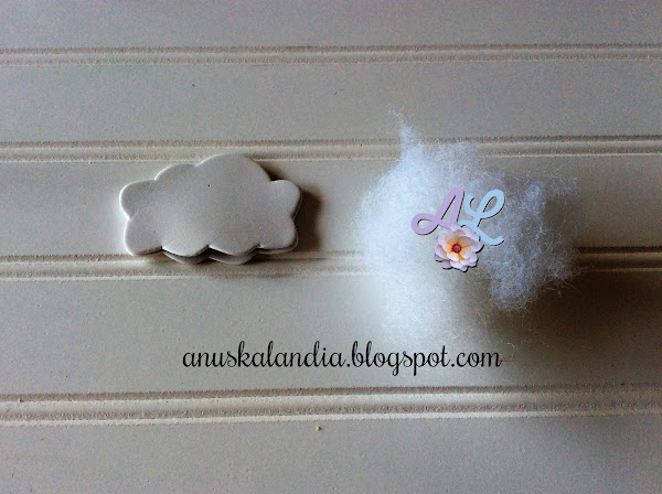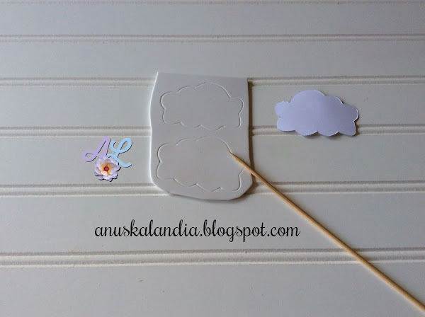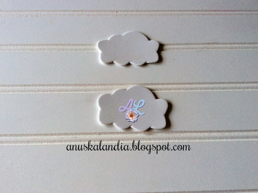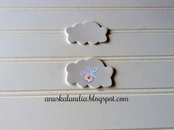 - Ponemos pegamento alrededor de una de las nubes, menos en las dos ondas que quedan abajo.