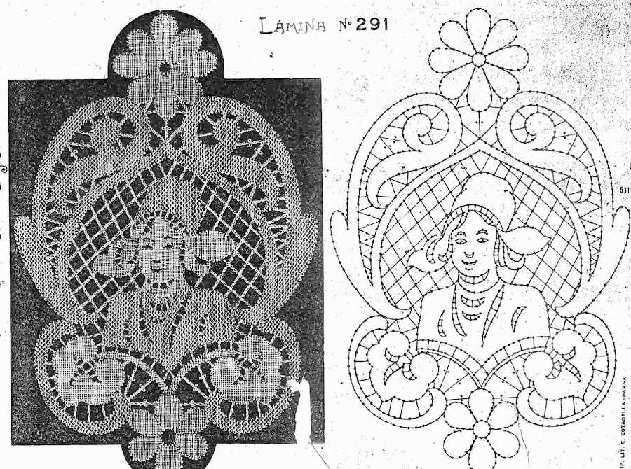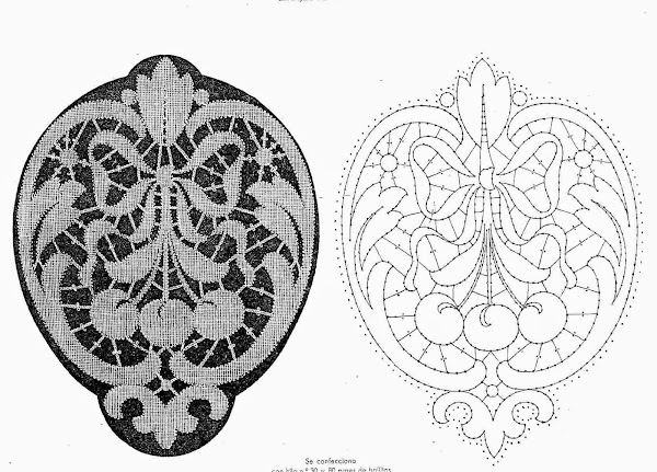 He encontrado éstos dos patrones para unos dibujitos de bolillos, yo creo que quedarían bién enmarcados con una cartulina de color detrás, o bién metiéndoles hilos de colores al elaborarlos. Yo hace mucho tiempo que no hago bolillos, la verdad, pero a ver si me voy animando con éstas joyas que voy encontrando.