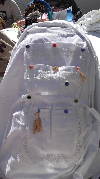 Me llamo mucho la atención un bolillero que estaba destapando su dueña y que ya el envoltorio era puro arte. Fijaros en todos los bolsillos que lleva el paño para guardar y tenerlo todo ordenado. ¿Y las puntillas?
