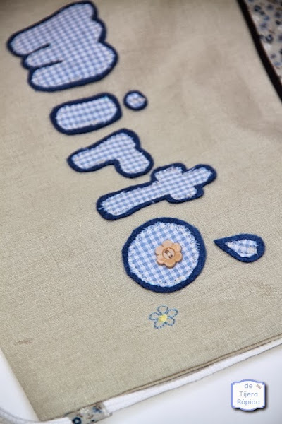 Entrada estilo telegrama, que si espero a tener tiempo para enrrollarme y contaros mas cosas, no voy a publicar en varias semanas.... Esta bolsa para guardería que hice para Nerea tiene tamaño merienda, como a su mami le gustaba mucho la tela de estrellitas que tengo requeteagotada, sólo me quedaba suficiente para una bolsa de tamaño inferior. Para las letras me pidió mezclar rosa-fucsia, es de l ...