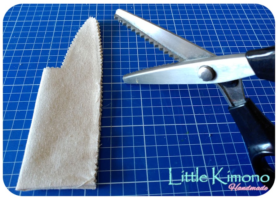3. Recortamos la silueta, es aconsejable usar una tijera de picos para este tejido pues hace que se deshilache menos y queda más decorativo^^. (Para el fieltro no haría falta)