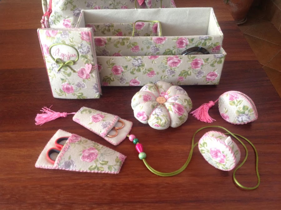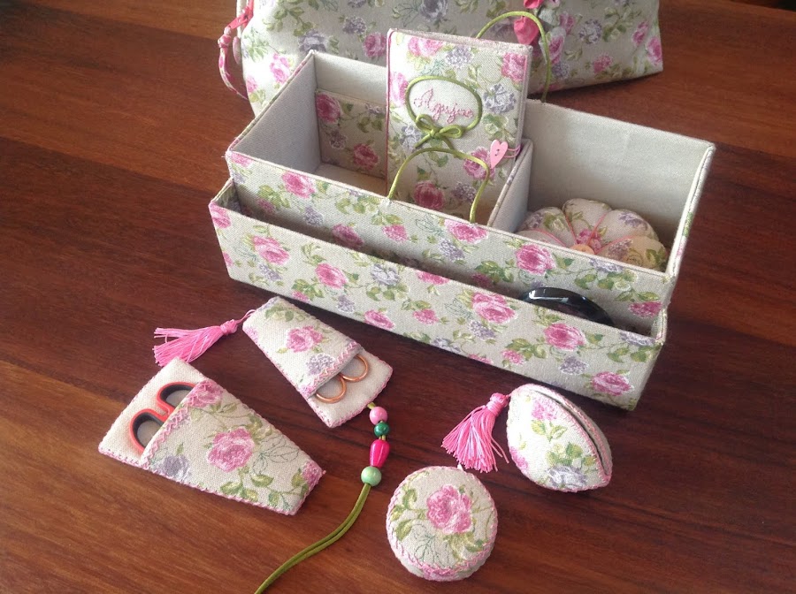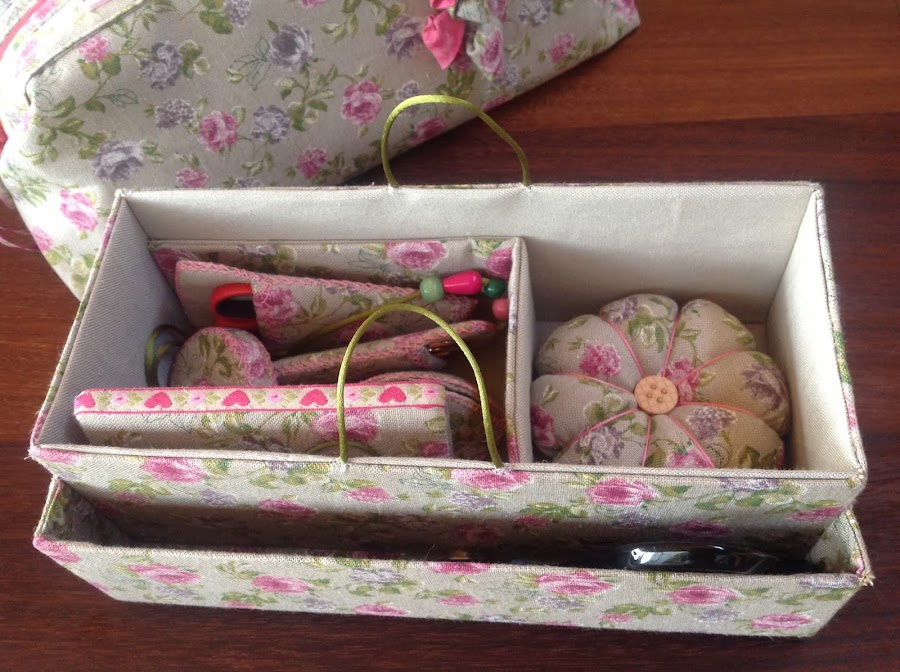 Hace unos días que sigo el canal de YouTube de Las sencillas y bonitas cosas de Marisol. Os lo recomiendo porque tiene tutoriales muy fáciles de seguir y muy bien explicados. Allí encontré la explicación de un bolso neceser precioso al que le he realizado algunos cambios: Un organizador interior hecho con cajas de cartón de zapatos y con la técnica del cartonaje. También hice los accesorios de costura a juego con la bolsa.