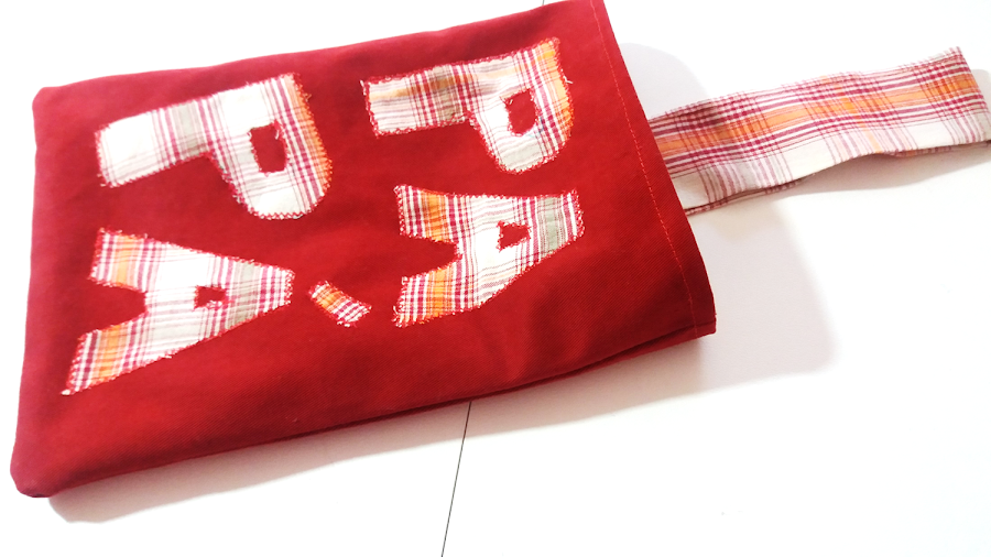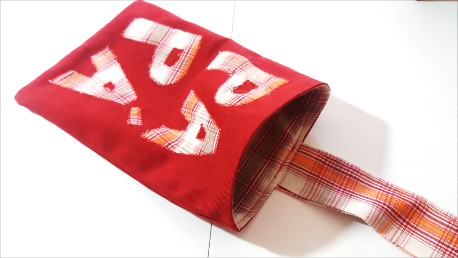 Lo primero será decorar la tela exterior si así lo deseas. Yo le he puesto la palabra Papá con la misma tela que usé para el forro y la cosí con un doble zigzag por todo el borde.