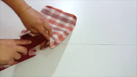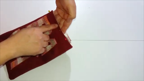 Hacemos lo mismo con el forro, enfrentamos sus derechos y cosemos por todo el borde, dejando unos 8 cm en la parte inferior sin coser y dejando también la parte superior abierta.