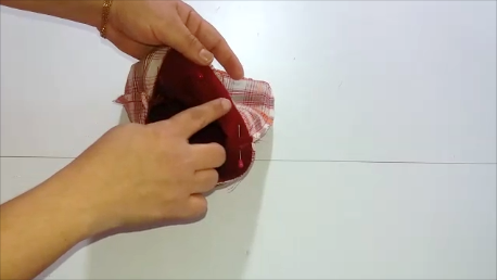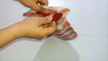 Por al agujero del forro, damos la vuelta, sacando por él la bolsita exterior.