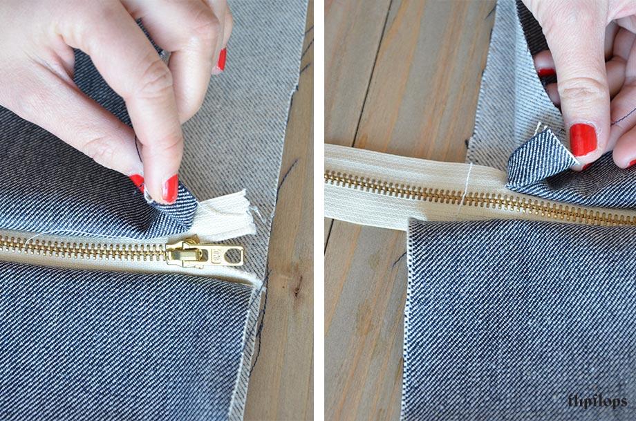 7- Si te ha sobrado mucha cremallera como a mí, córtala