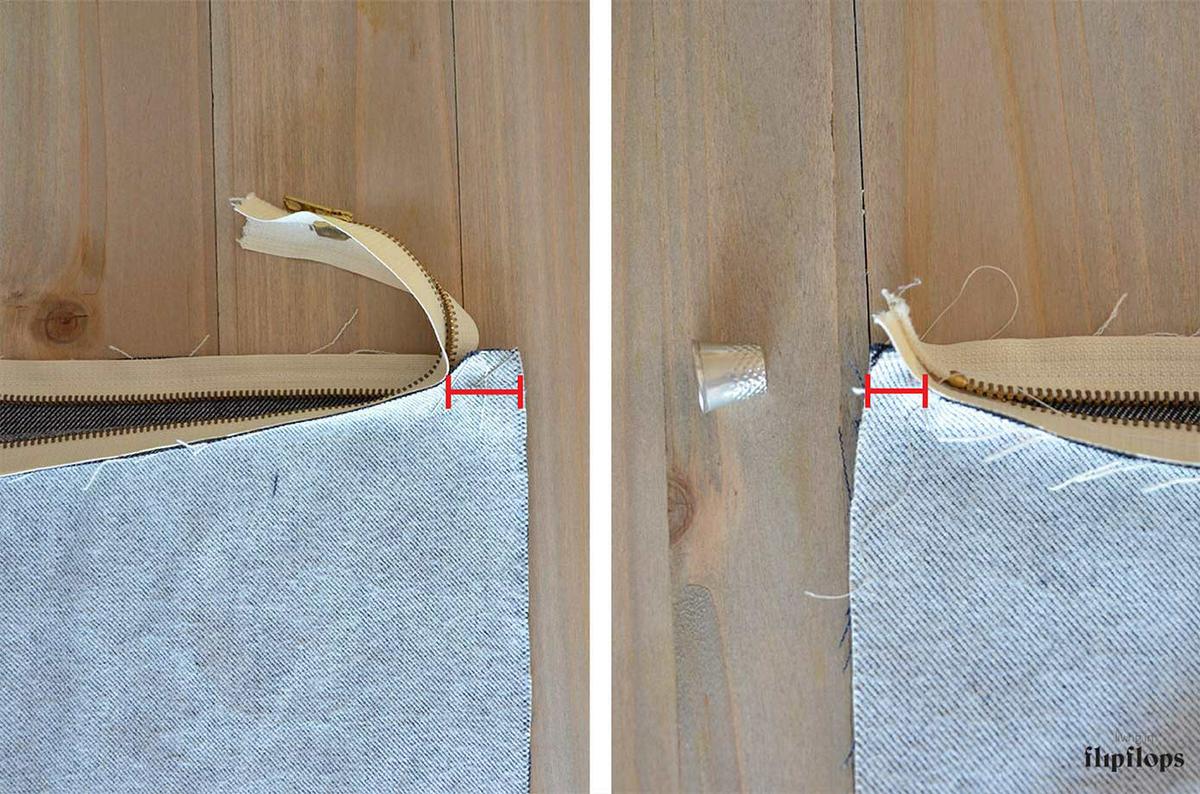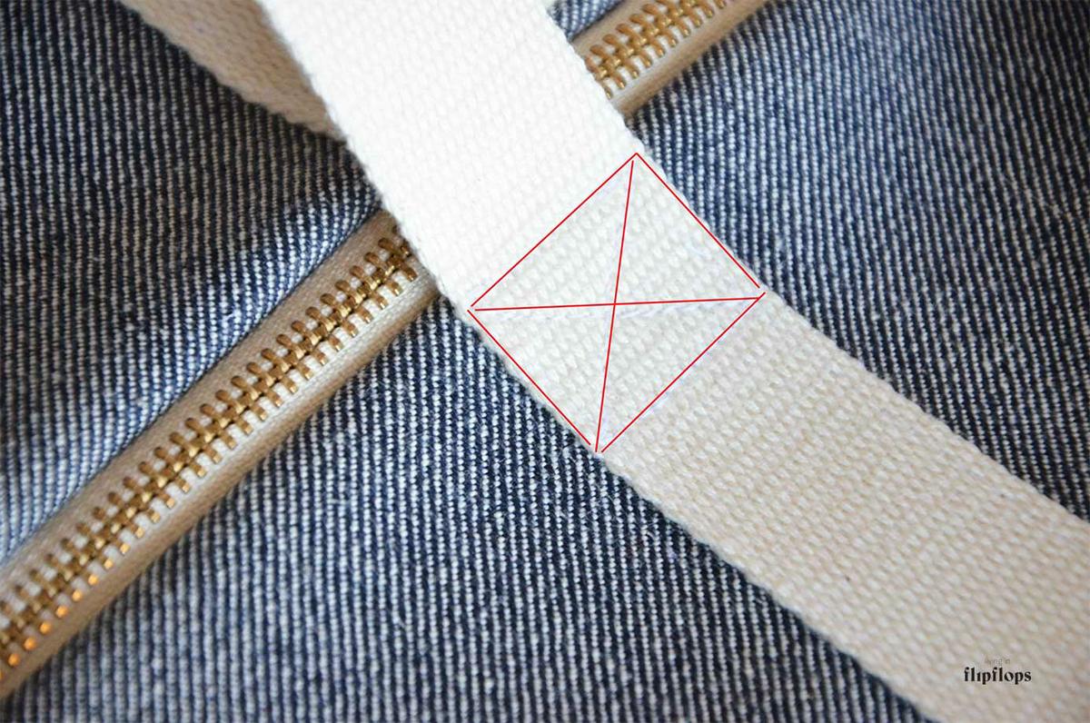Haz una x para reforzar la costura, asegurate de no coser la valor de costura de la cremallera