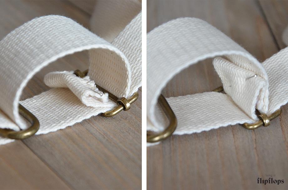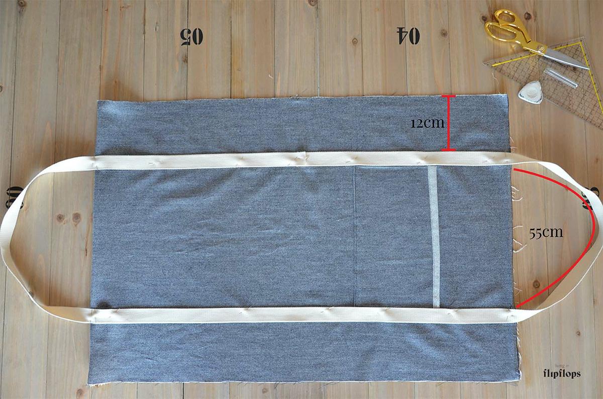 Dobla las asas en dos( a lo ancho) y coselas en una longitud de 20cm