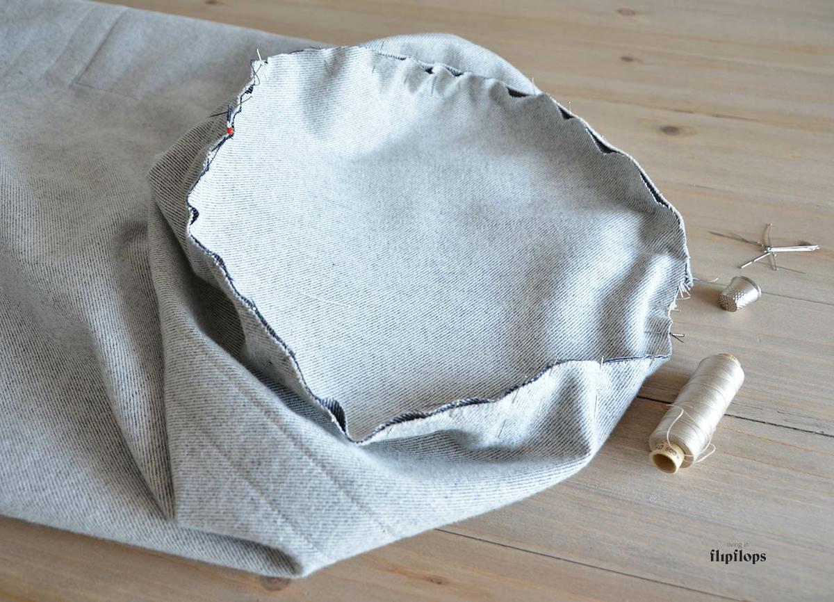 Antes de coserla te aconsejo pases la bolsa por la remalladora o le pases un punto zigzag por todos los extremos. Yo lo hice más tarde y es mejor hacerlo antes.