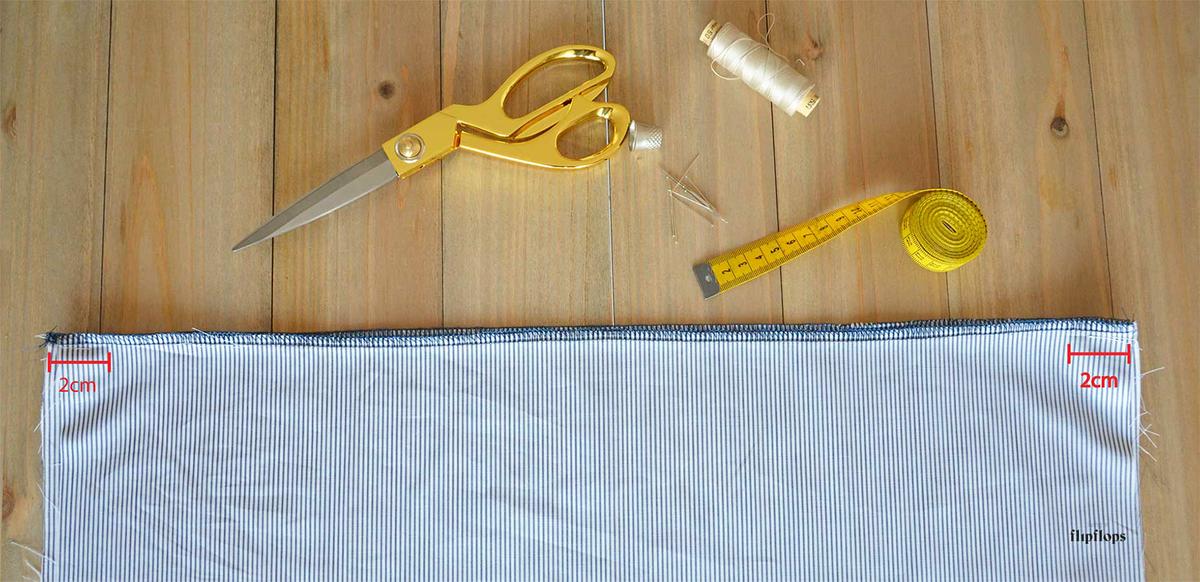 Dobla la tela del forro a la mitad y cose 2cm a cada extremo( dejando 1cm de valor de costura)