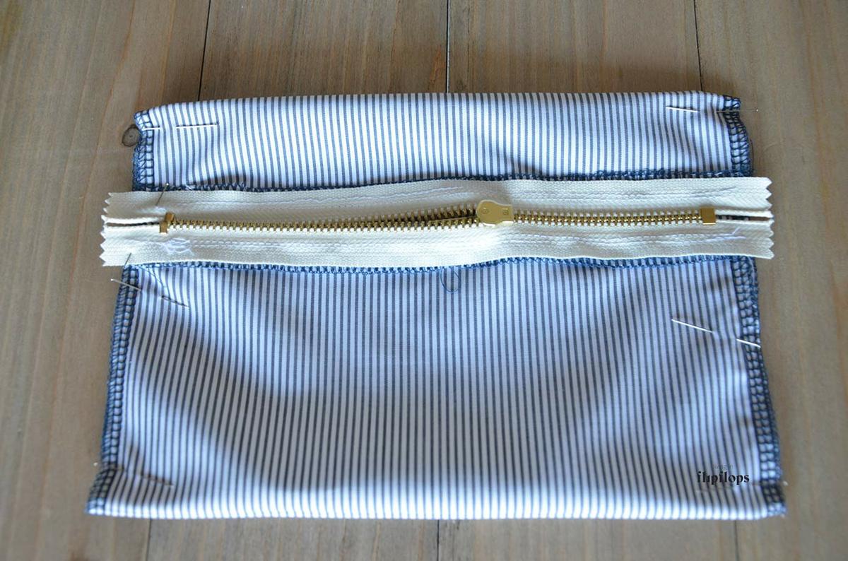 Con la plancha o con jabón de sastre marca el borde del bolsillo a 4cm de la cremallera , dale la vuelta al bolsillo y cose los laterales dejando 1cm de valor de costura.Una vez cosido ponlo de nuevo del derecho, un poco de plancha y voila! Te he enseñado com coser el bolsillo pero al mismo tiempo es una forma muy chula de hacer un pequeño neceser