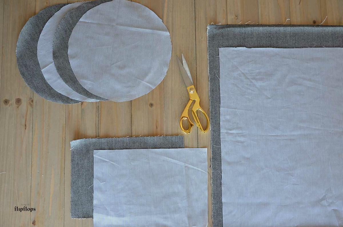 Circulo: 4 trozos( 2 de forro y 2 tela exterior)