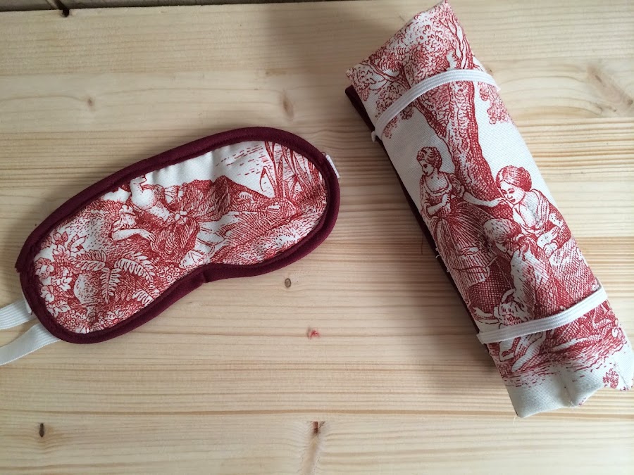 Para completar el kit de viaje (aunque realmente esto lo hice antes de irme de viaje) me hice un antifaz para dormir (uno de mis imprescindibles cuando viajo, sobretodo fuera de España donde parece que no existen las persianas ja ja) y una funda portabrochas, ambos del blog Plan B Ann Evers