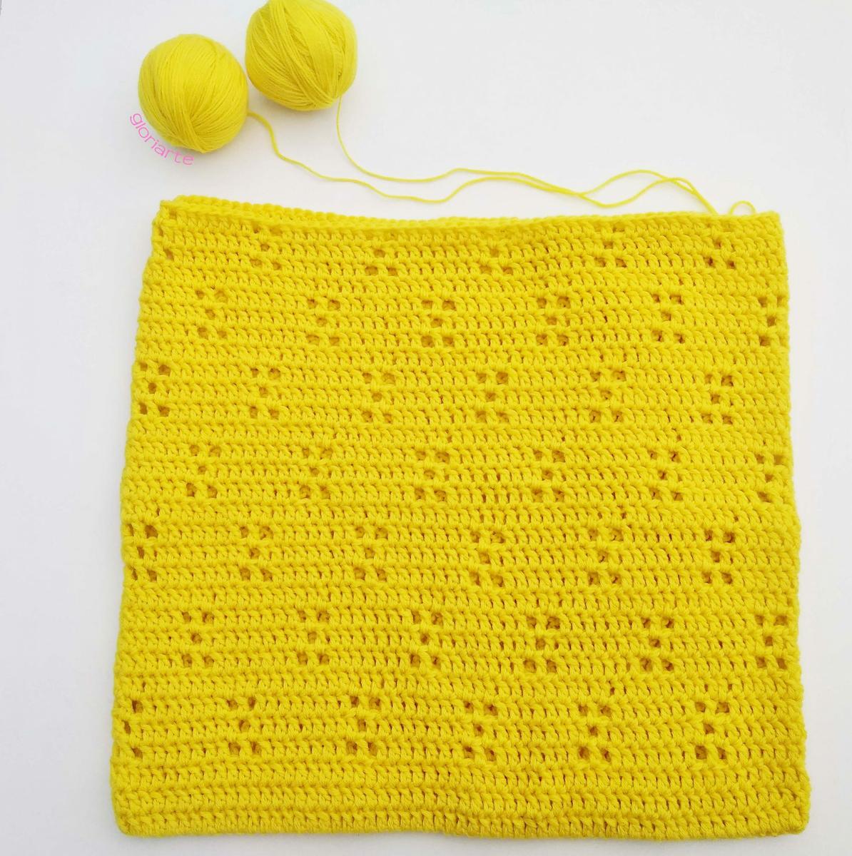 Motivo 2= 2 puntos altos, 1 cadeneta, 2 puntos altos. Vuelta 4: