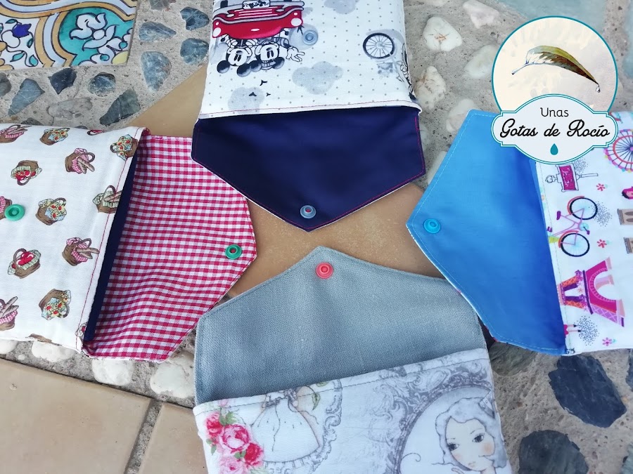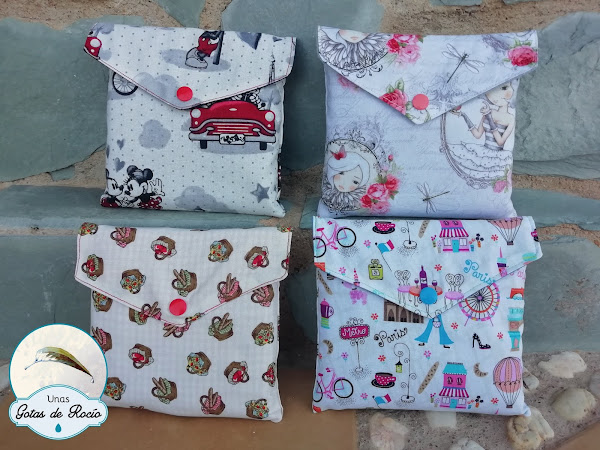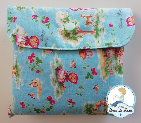 Y para llevarla en el bolso, a cada bolsa de la compra le he hecho una funda tipo carterita y con cierre snap.