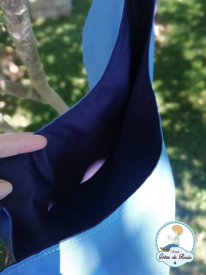 Para no restarle protagonismo al bordado, la tela es lisa. Interior forrado, por supuesto, aunque pese más la bolsa y ocupe más espacio, pero si no estuviera forrada no sería Unas Gotas de Rocío. Otro modelo sin bordar no te digo yo que no le haga costura francesa y no lo forre, pero esta, antes muerta que sin forro jajajaja.