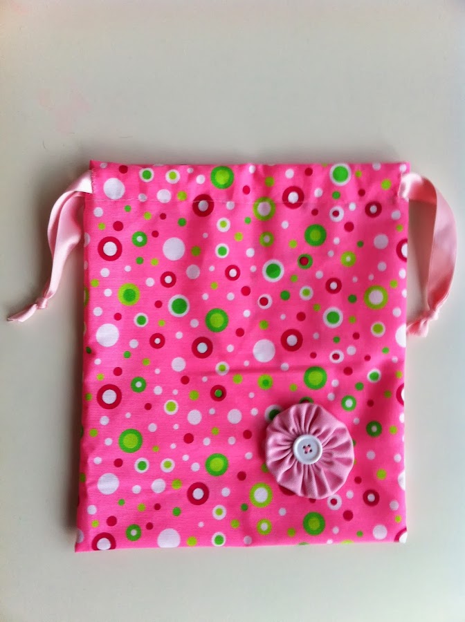 Los hice combinados. Es el mismo, pero con las telas invertidas. Y como me sobro un poco de tiempo, le hice a juego una bolsa de merienda, con yoyo decorativo.