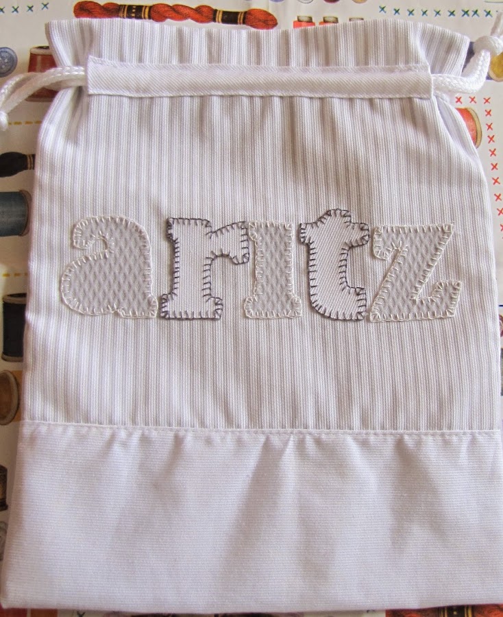 Seguramente en septiembre empezará en la guarderia y le he preparado su primera bolsa de merienda personalizada para que lleve sus mudas y juguetes. La he forrado con tela plastificada para que no tenga ningun problema si mete algo húmedo.