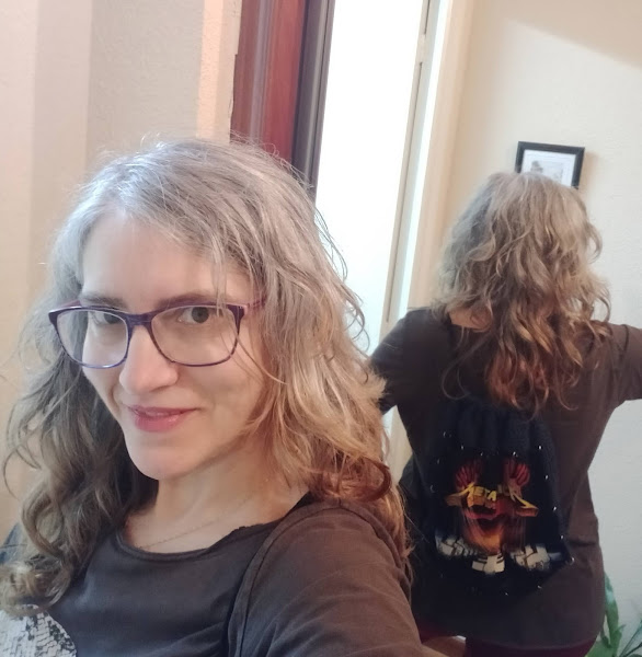 Esta primera la he puesto porque he salido muy guapa jajajaja, y así presumo de transición a las canas , porque la bolsa se ve poco jajaja.