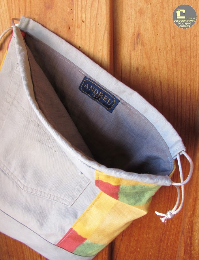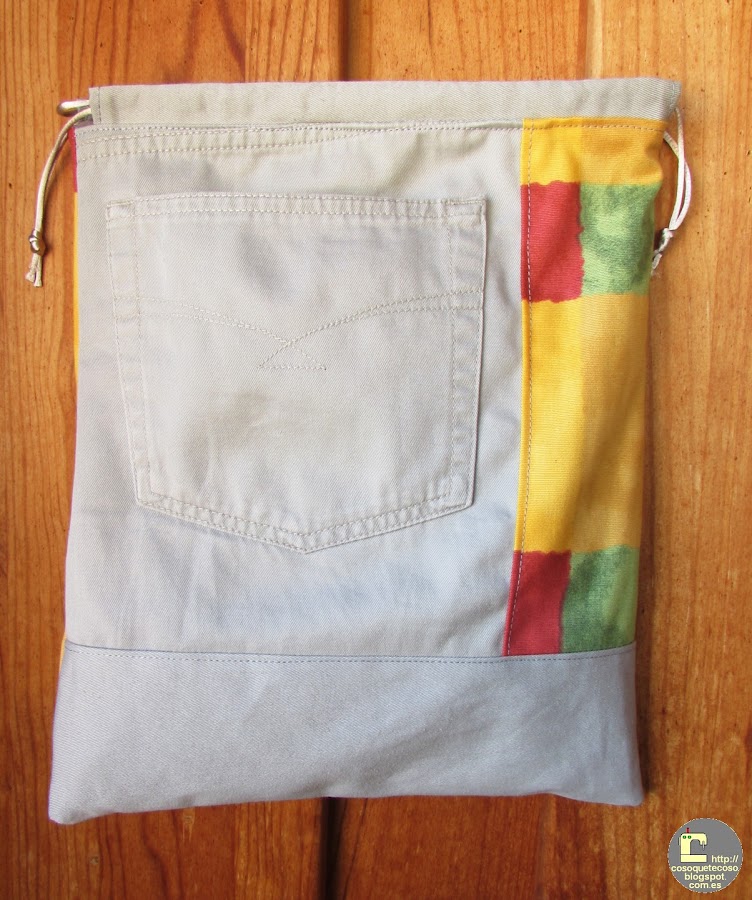 Y, ahora, os cuento otro secreto: nunca hagáis una bolsa -si queréis que cierre con cordones- con la parte trasera del pantalón. Tiene tal volumen de costuras y telas que es imposible que cierre.