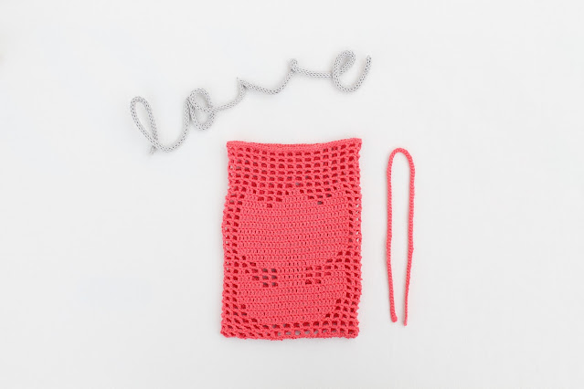 For the closing rope: cast on a chain measuring aproximately 45 cm (or the length you prefer) and make one slip stitth on each chain stitch
