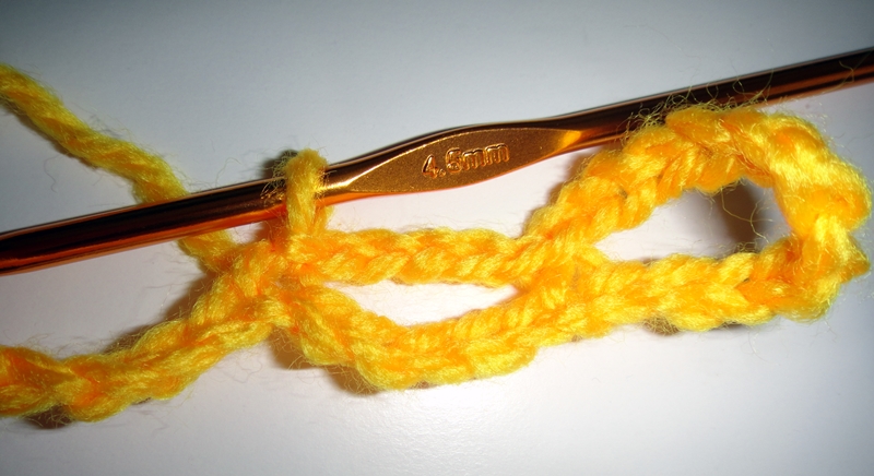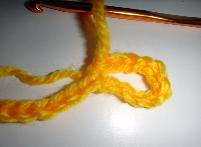 A continuación hacemos otros 5 arcos por el otro lado de la cadeneta de base, de la misma manera: 5 puntos de cadeneta, pinchamos en el mismo punto donde hicimos el punto raso del arco del otro lado, y hacemos un nuevo punto raso.