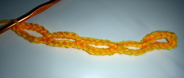 17 puntos de cadeneta, un punto raso pinchado en el centro del tercer arco siguiente.