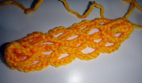 5 puntos de cadeneta, 1 punto raso en el centro del último arco.