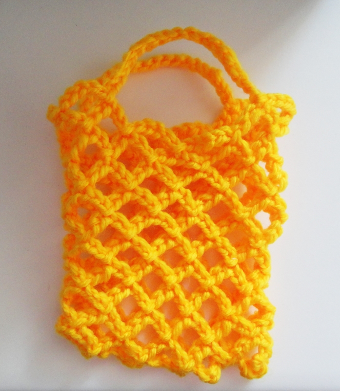 Con una aguja lanera escondemos los cabos que quedaron sueltos al principio y al final, y ya podemos darle uso a nuestra bolsa.