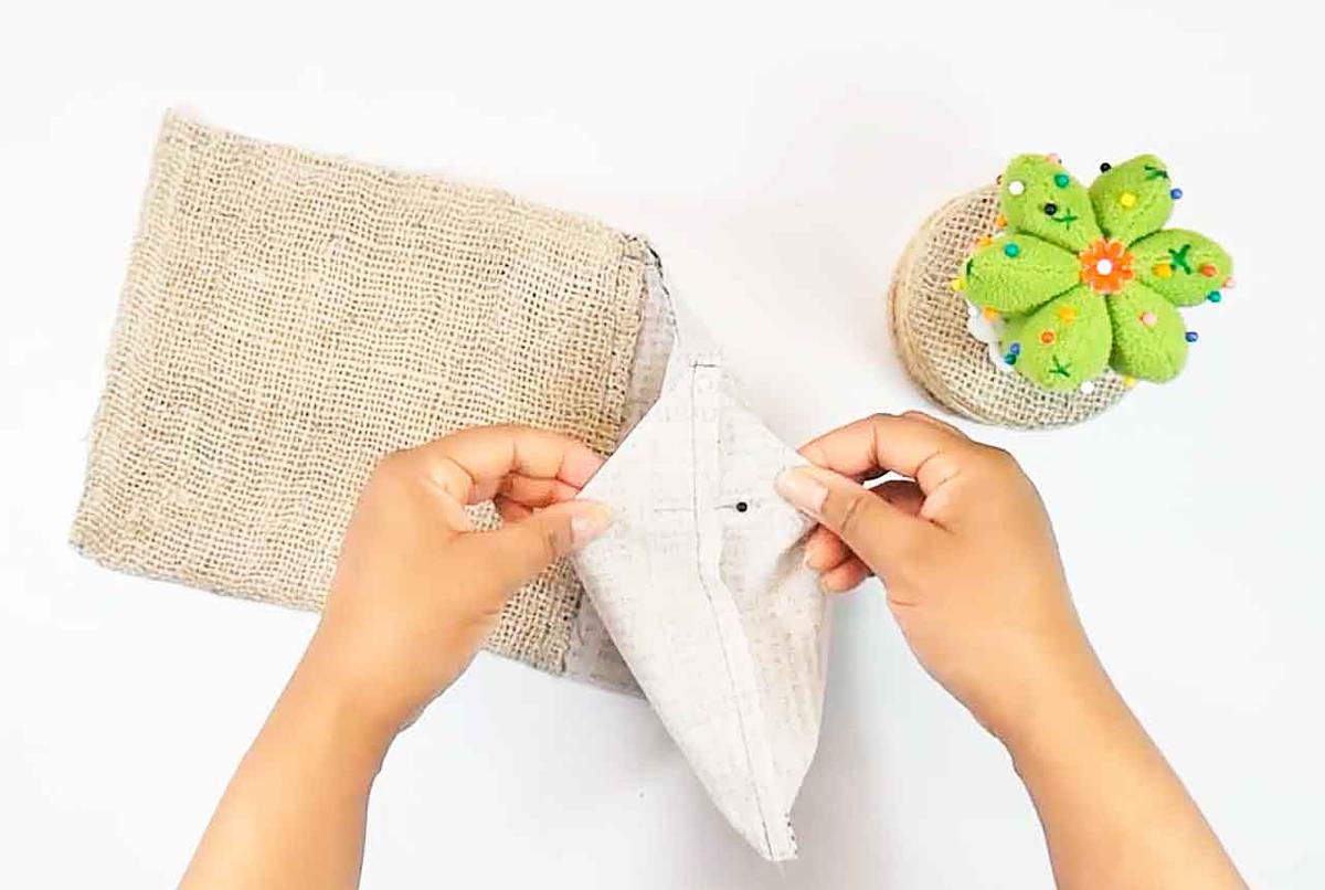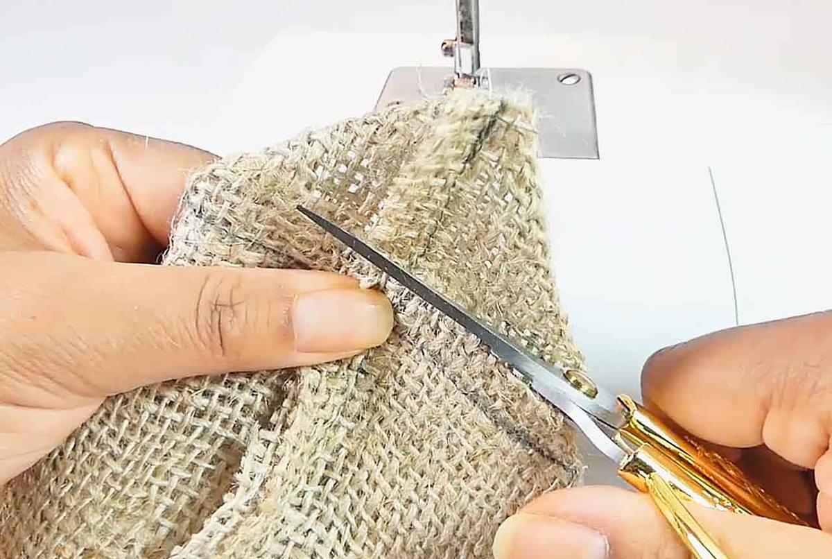Después de coser las 4 esquinas, cortar la tela sobrante.