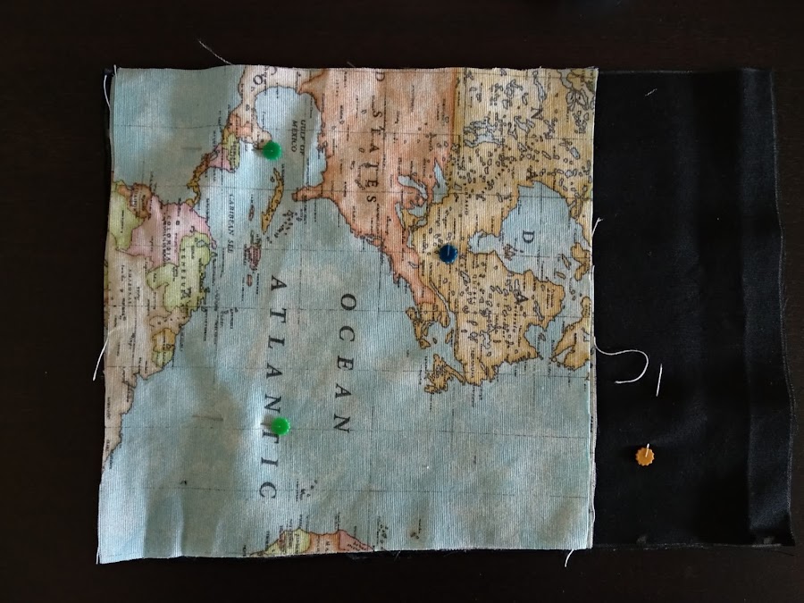 Junta las telas por el lado donde no has cortado los cuadrados, y derecho con derecho, cóselas