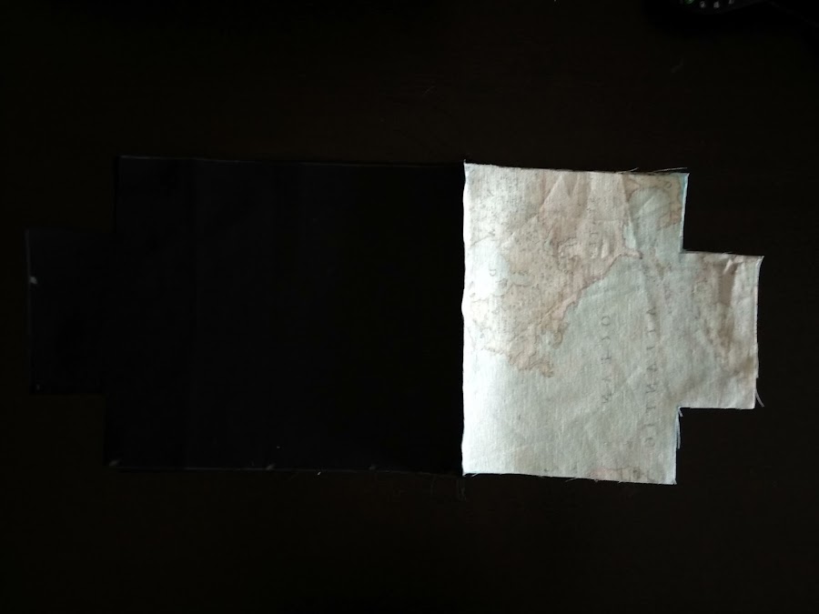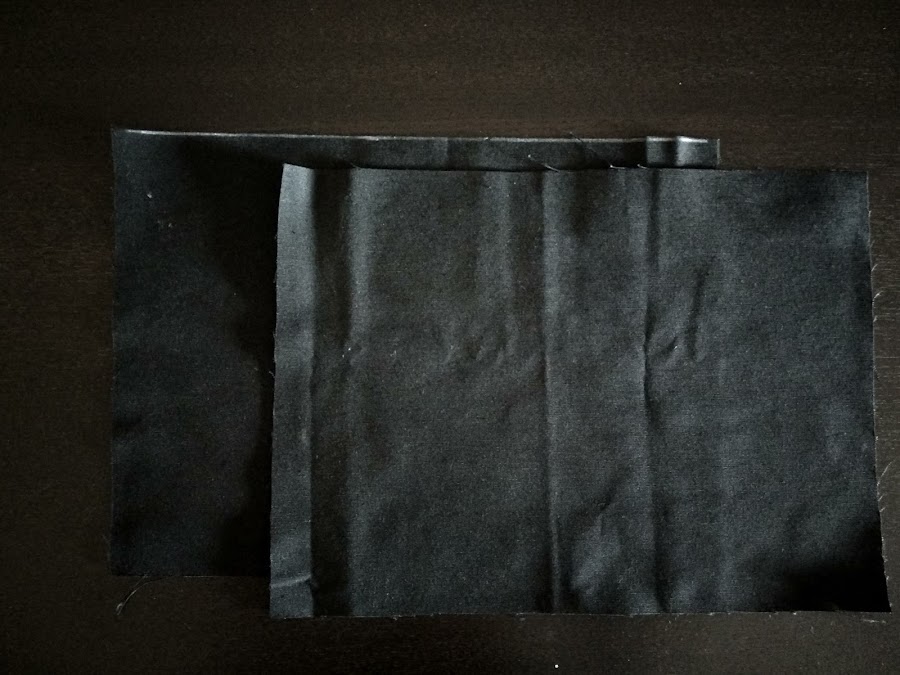 Repite la misma acción en las otras dos telas, y ahora júntalas, de nuevo derecho con derecho y cose solo por aquí: