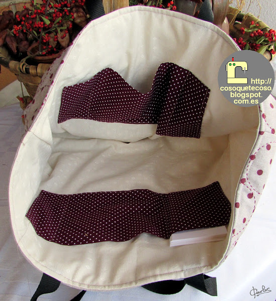 Por dentro, también varios bolsillos, grandes, pequeños, medianos, y también en corinto y de lunares.
