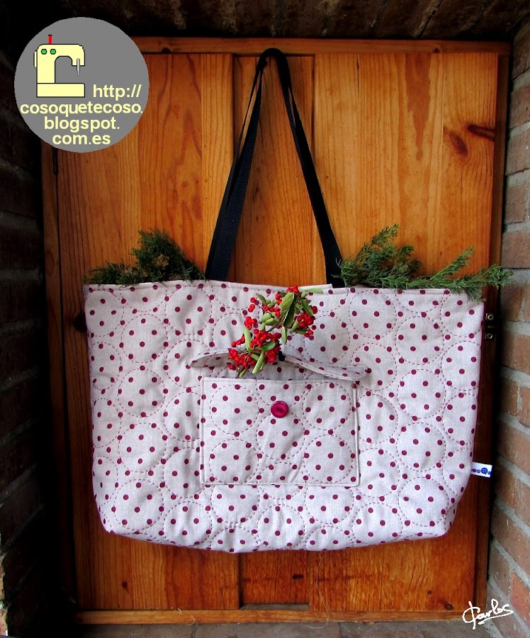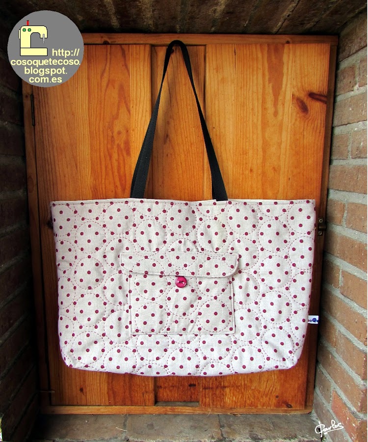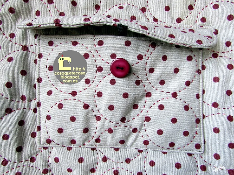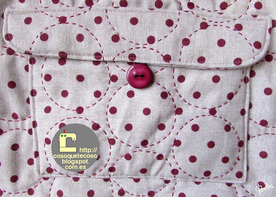 Como le gustan mucho mis acolchados en círculo, la loneta de lunares y el corinto, he sido feliz haciéndola, es como si la hiciera para mi.