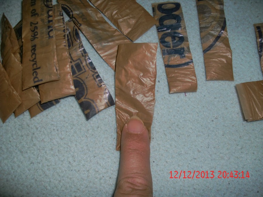 Seleccionamos las bolsas mejores, que estén sanas, las alisamos y acomodamos bien, la cantidad necesaria depende del tamaño de la bolsa a utilizar y de la bolsa a realizar.
