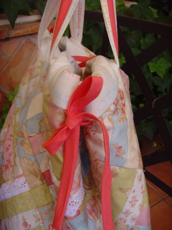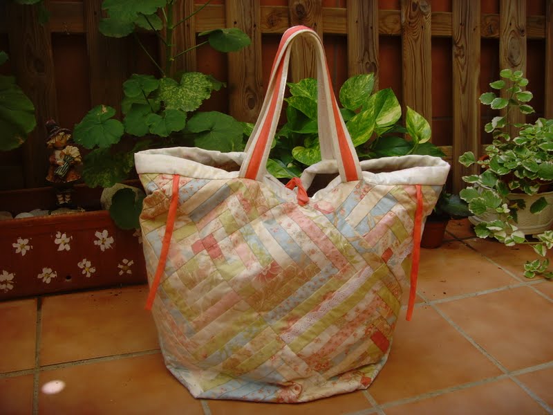 Así que ando terminando muuuuuy lentamente las labores pendientes, pero una de ellas que ya os puedo mostrar es mi bolsa de log cabin para el verano:
