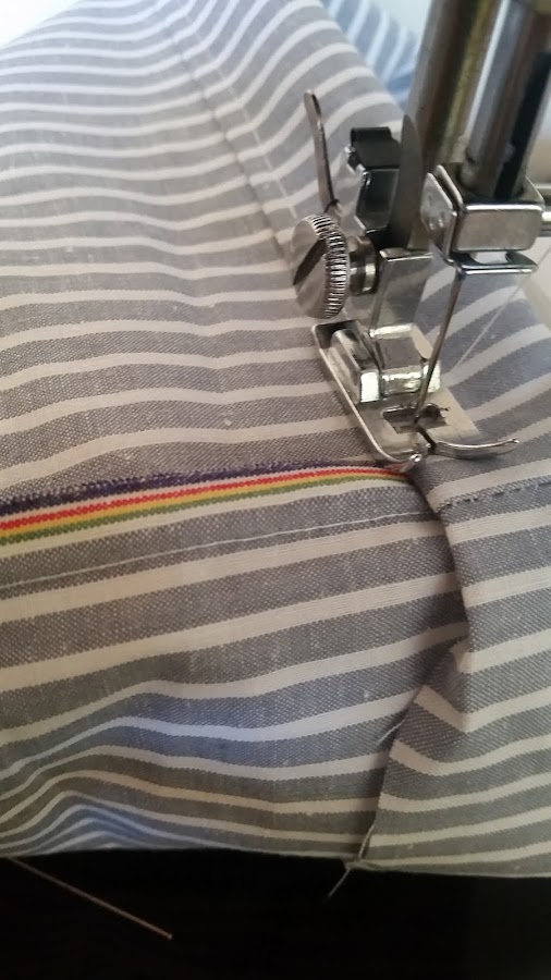 Ahora el otro extremo, haremos un dobladillo hacia adentro a unos 3 cms, siempre doble vuelta, así no quedan hilitos dando vuelta.