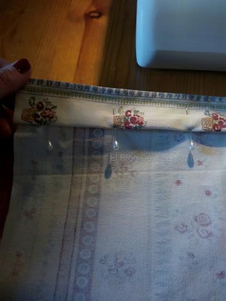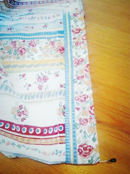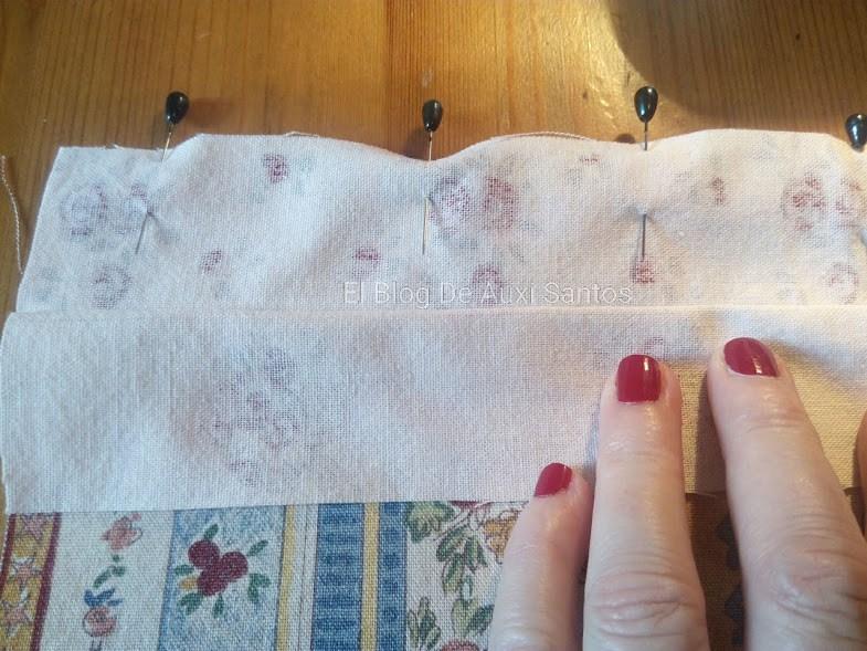 abre la tira por la mitad y coloca con alfileres en el filo de la bolsa