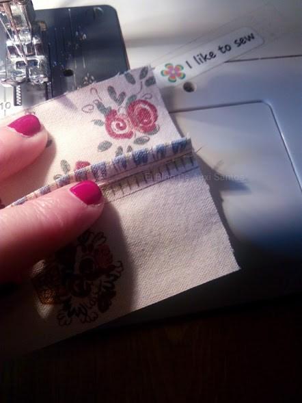 hacemos un pespunte a lo largo en las cintas de 10X59 que se usaran para rematar la boca del bolso