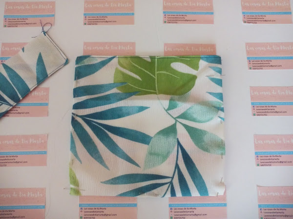 7. Ponemos el forro a la pieza inicial que es la estructura de la bolsa. (Punto 1).