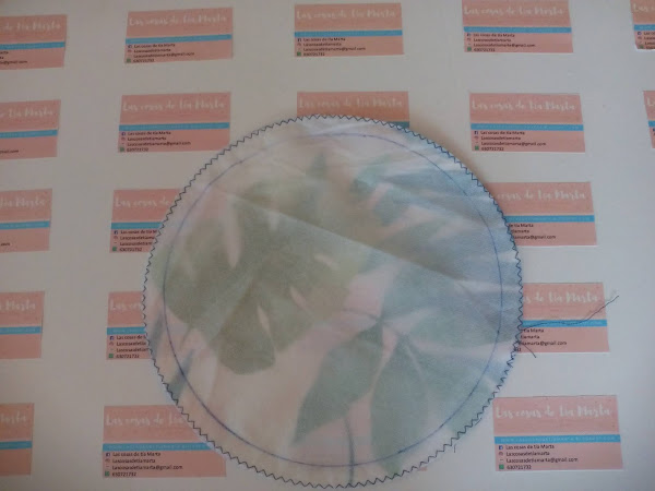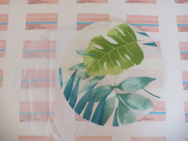 2. Cortamos dos círculos, uno de tela y otro de forro y unimos. (Reservamos).