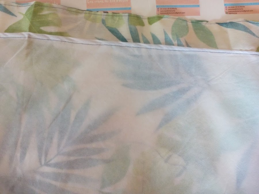 9. Hacemos un dobladillo en la parte de arriba de la bolsa por donde luego meteremos un cordón. También haremos un pequeño dobladillo a los lados para darle luego un poco más de juego a la hora de meter la colchoneta. ( Todo trabajando sobre la pieza central).