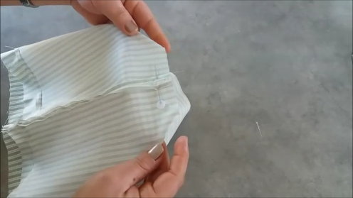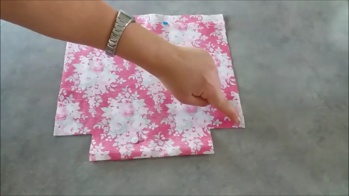 Cortadas las telas, las vamos a doblar por la mitad, y vamos a pasar una puntada recta por lo lados de 22 cm, de esta manera: