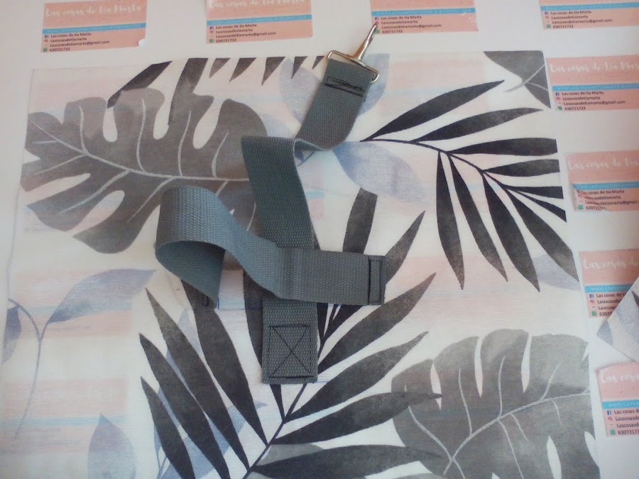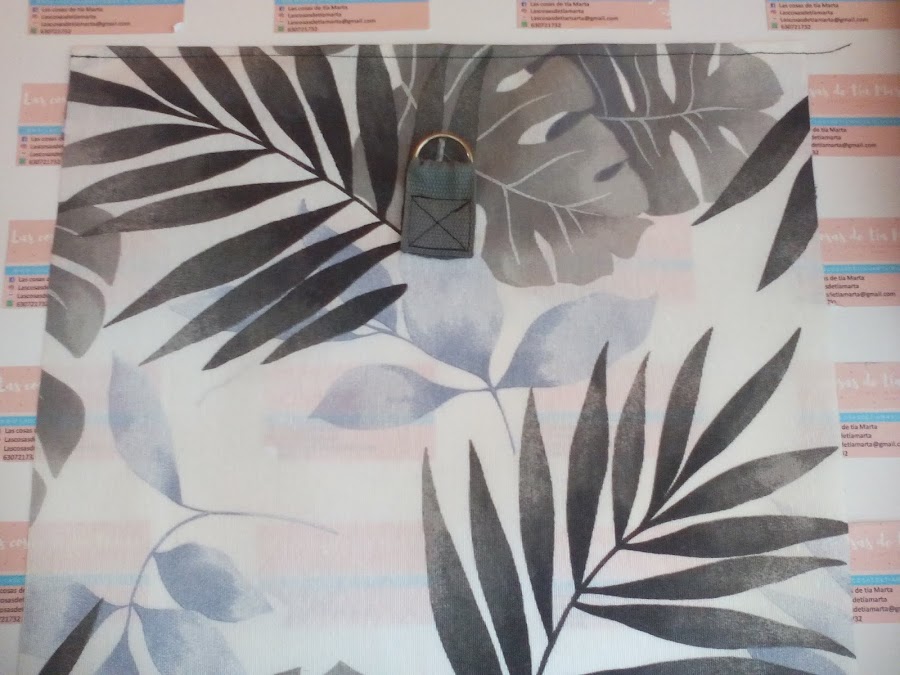 3. Ahora vamos a coser el asa y el cierre. Para ello calculamos el centro como hicimos con el bolsillo y lo cosemos a una distancia de 25cm.