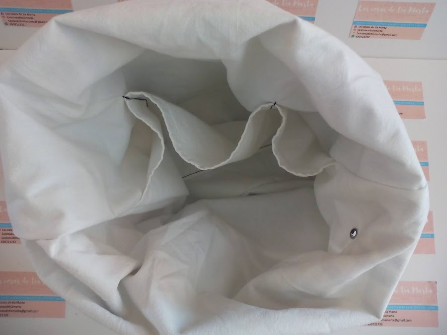 7. Seguiremos los pasos anteriores: bolsillo, unir el forro y finalmente coser a la bolsa.