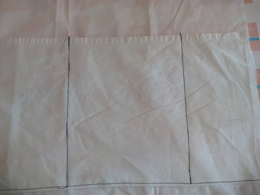 1. Cortamos dos piezas de la tela resignada de 60*40 cm y otra de 40*40 cm que usaremos para el bolsillo.