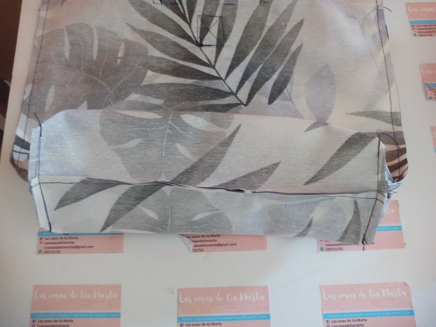 2. Preparamos el bolsillo. Hacemos un dobladillo de 5cm y damos un pespunte alrededor.