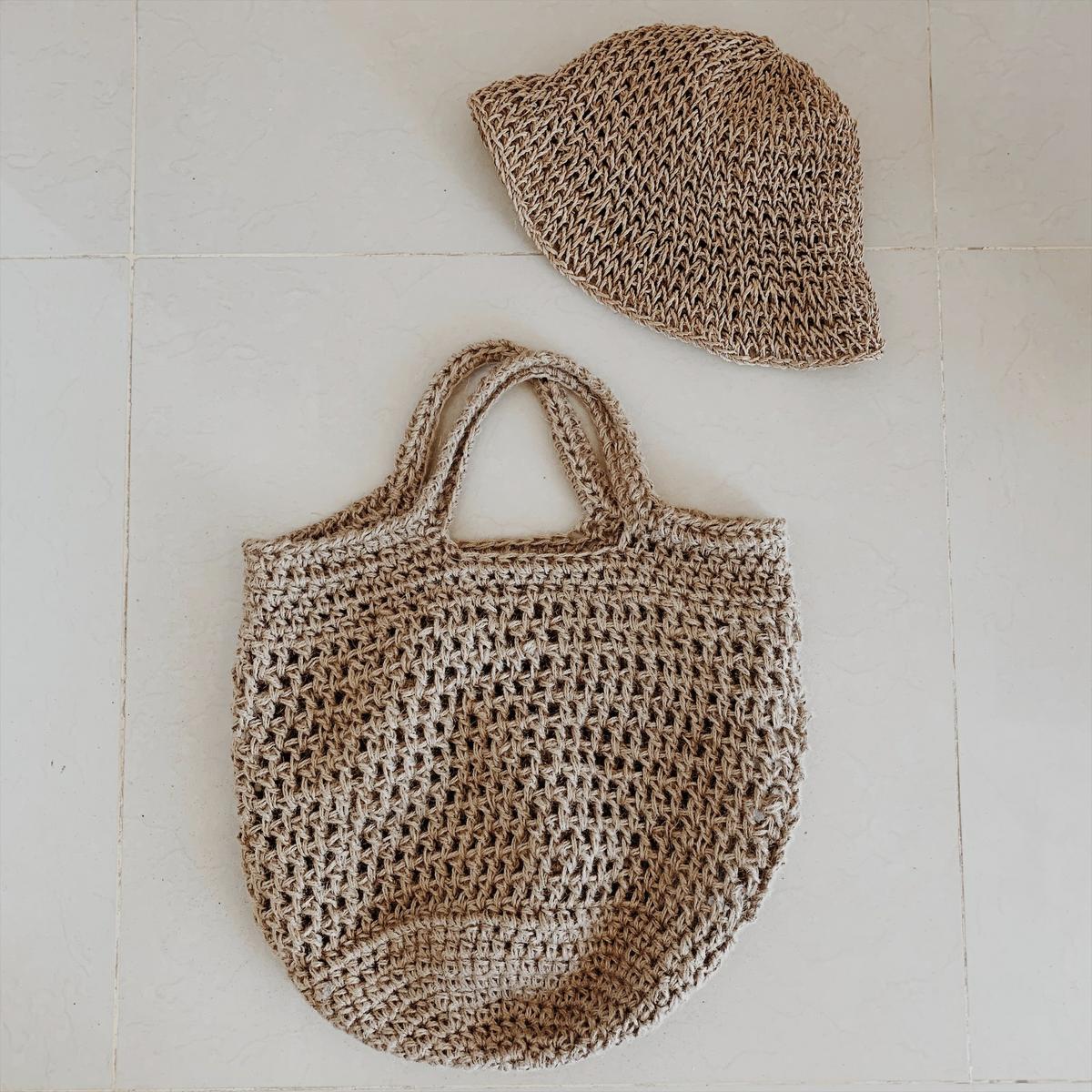 Bolsa superfácil tejida al crochet en yute, que se puede usar para la plya o para hacer los mandados.
